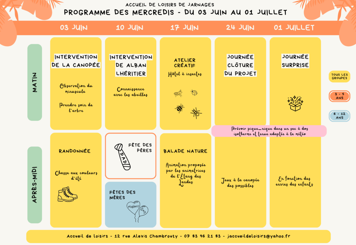 Pour vous proposer un accueil et des animations de qualité, les inscriptions se feront au moins une semaine en avance et en fonction de notre taux de remplissage.